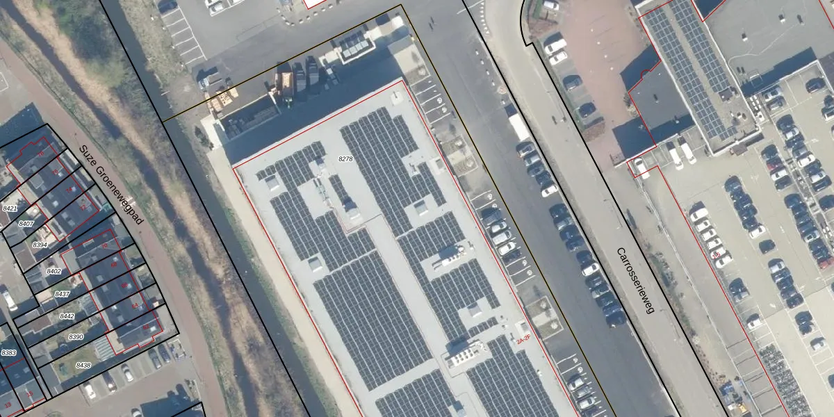 Carrosserieweg 2-F is gelegen op kadastraal perceel WDN01A8278. Deze kadastrale aanduiding is uniek en wordt gebruikt door het Kadaster om eigendomsrechten en andere zakelijke rechten vast te leggen. Het perceel maakt onderdeel uit van de kadastrale gemeente Woerden.