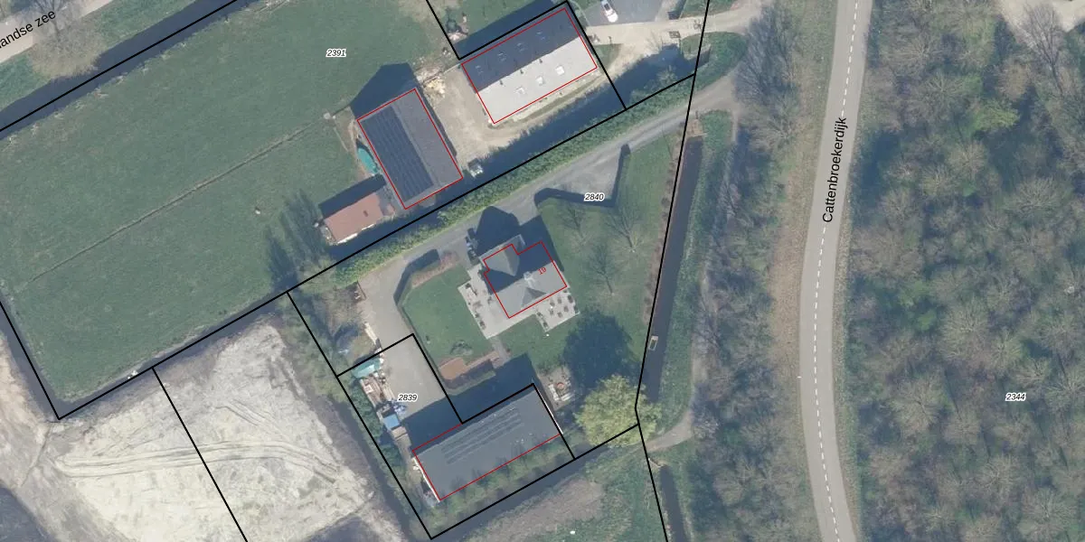 Cattenbroekerdijk 19 is gelegen op kadastraal perceel WDN01E2840. Deze kadastrale aanduiding is uniek en wordt gebruikt door het Kadaster om eigendomsrechten en andere zakelijke rechten vast te leggen. Het perceel maakt onderdeel uit van de kadastrale gemeente Woerden.