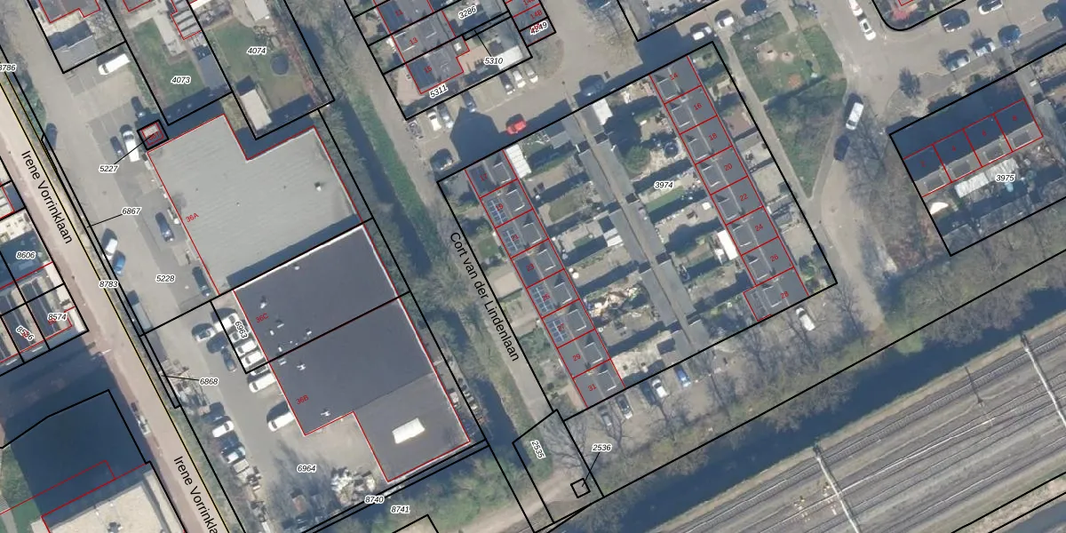 Het perceel waarop Cort van der Lindenlaan 23 staat heeft een oppervlakte van 2975 m². Dit is een zeer groot perceel. De perceeloppervlakte wordt geregistreerd door het Kadaster. Gedetailleerde informatie over de maten van dit perceel kunt u vinden in het rapport Kadastrale kaart met maatvoering van Cort van der Lindenlaan 23.