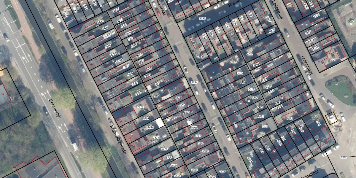Het adres ligt op het perceel WDN01-B-6587, dat zich in de kadastrale gemeente Woerden bevindt. Het perceel is kleiner dan gemiddeld in Woerden. Het perceel is 153 m² groot, terwijl het gemiddelde ligt op 1326,34 m². De grootste perceeloppervlakte in de kadastrale gemeente is 55,0 ha. De kleinste oppervlakte bedraagt 0 m². Er zijn geen andere adressen aanwezig op het perceel. De huidige grenzen van het perceel zijn digitaal in de Basisregistratie Kadaster (BRK) geregistreerd op 30-07-1999.