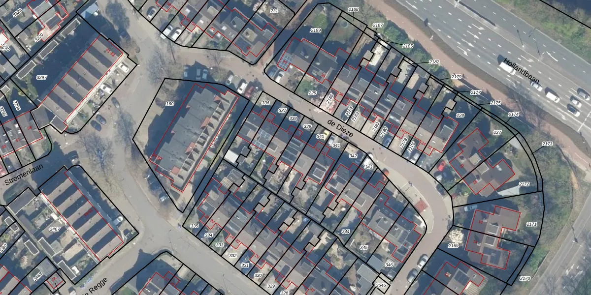 Het perceel waarop de Dieze 15 staat heeft een oppervlakte van 150 m². Dit is een middelgroot perceel. De perceeloppervlakte wordt geregistreerd door het Kadaster. Gedetailleerde informatie over de maten van dit perceel kunt u vinden in het rapport Kadastrale kaart met maatvoering van de Dieze 15.