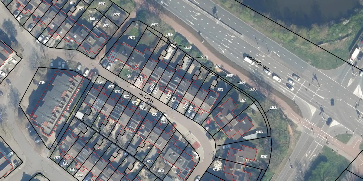 Gebruik de zoekbalk of klik op een perceel voor informatie over de adressen binnen dit perceel.