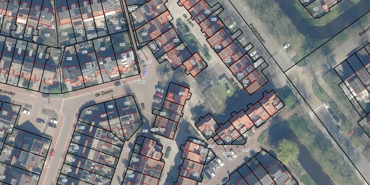 de Eem 19 is gelegen op kadastraal perceel WDN01D181. Deze kadastrale aanduiding is uniek en wordt gebruikt door het Kadaster om eigendomsrechten en andere zakelijke rechten vast te leggen. Het perceel maakt onderdeel uit van de kadastrale gemeente Woerden.