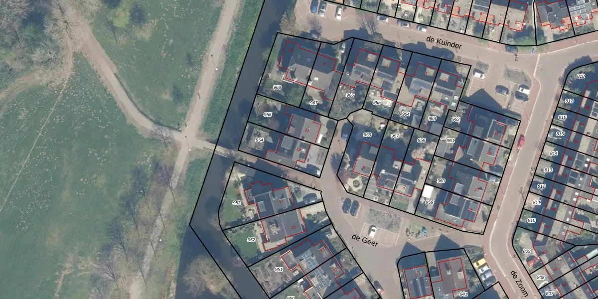 Gebruik de zoekbalk of klik op een perceel voor informatie over de adressen binnen dit perceel.