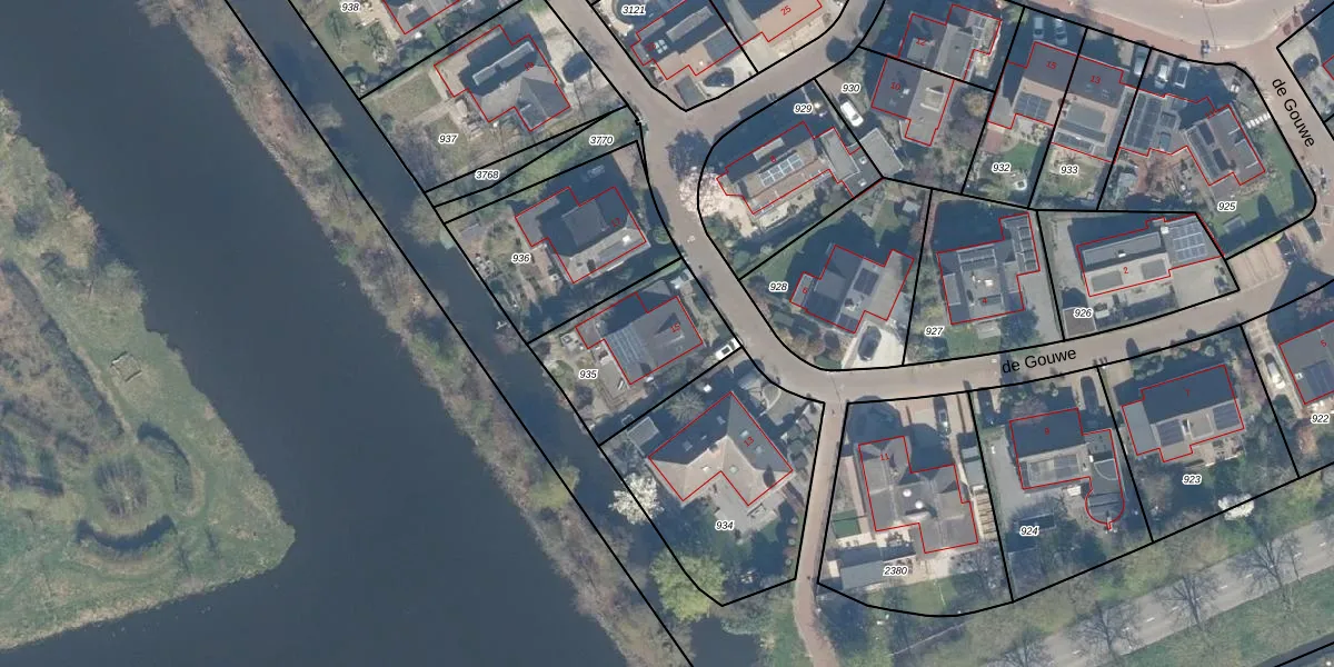 de Gouwe 15 is gelegen op kadastraal perceel WDN01D935. Deze kadastrale aanduiding is uniek en wordt gebruikt door het Kadaster om eigendomsrechten en andere zakelijke rechten vast te leggen. Het perceel maakt onderdeel uit van de kadastrale gemeente Woerden.
