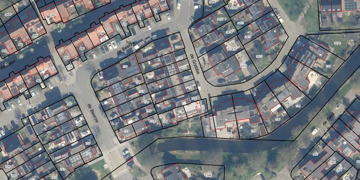 Gebruik de zoekbalk of klik op een perceel voor informatie over de adressen binnen dit perceel.