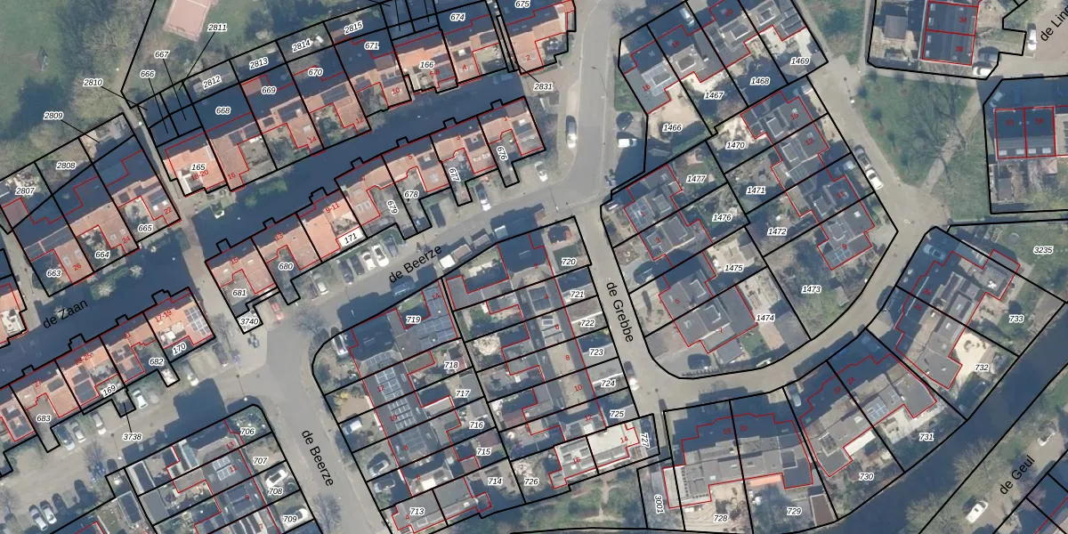 Gebruik de zoekbalk of klik op een perceel voor informatie over de adressen binnen dit perceel.