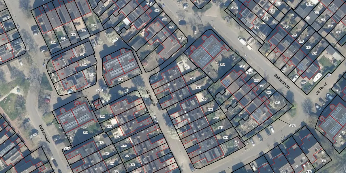 Gebruik de zoekbalk of klik op een perceel voor informatie over de adressen binnen dit perceel.