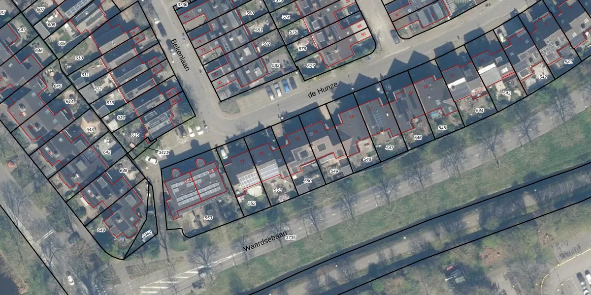 de Hunze 23 is gelegen op kadastraal perceel WDN01D550. Deze kadastrale aanduiding is uniek en wordt gebruikt door het Kadaster om eigendomsrechten en andere zakelijke rechten vast te leggen. Het perceel maakt onderdeel uit van de kadastrale gemeente Woerden.