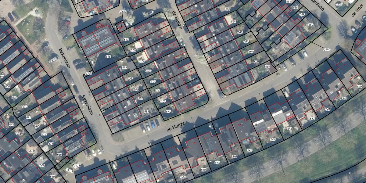 Gebruik de zoekbalk of klik op een perceel voor informatie over de adressen binnen dit perceel.
