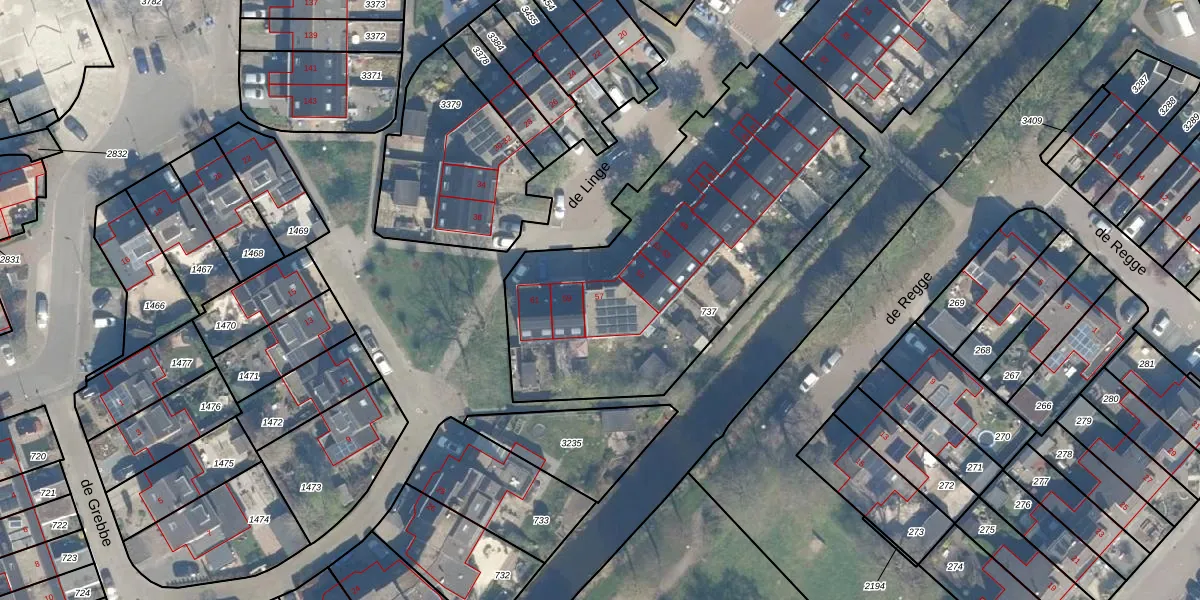 Het perceel waarop de Linge 57 staat heeft een oppervlakte van 1732 m². Dit is een zeer groot perceel. De perceeloppervlakte wordt geregistreerd door het Kadaster. Gedetailleerde informatie over de maten van dit perceel kunt u vinden in het rapport Kadastrale kaart met maatvoering van de Linge 57.