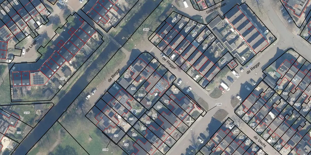 Het perceel waarop de Regge 3 staat heeft een oppervlakte van 168 m². Dit is een middelgroot perceel. De perceeloppervlakte wordt geregistreerd door het Kadaster. Gedetailleerde informatie over de maten van dit perceel kunt u vinden in het rapport Kadastrale kaart met maatvoering van de Regge 3.