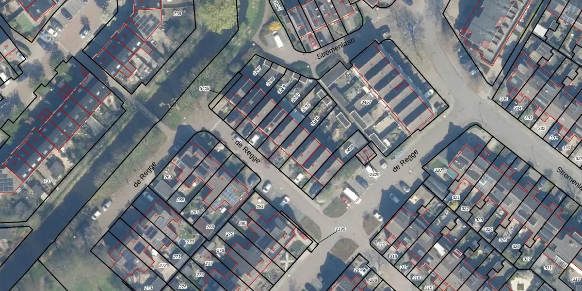 Gebruik de zoekbalk of klik op een perceel voor informatie over de adressen binnen dit perceel.