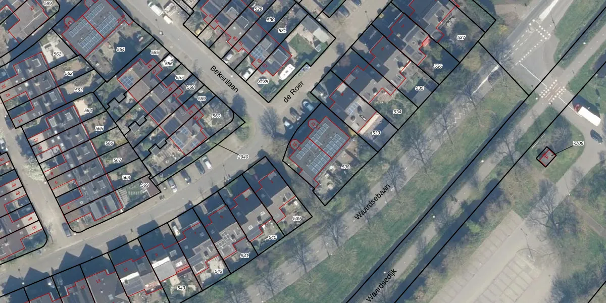 Het perceel waarop de Roer 23 staat heeft een oppervlakte van 549 m². Dit is een groot perceel. De perceeloppervlakte wordt geregistreerd door het Kadaster. Gedetailleerde informatie over de maten van dit perceel kunt u vinden in het rapport Kadastrale kaart met maatvoering van de Roer 23.