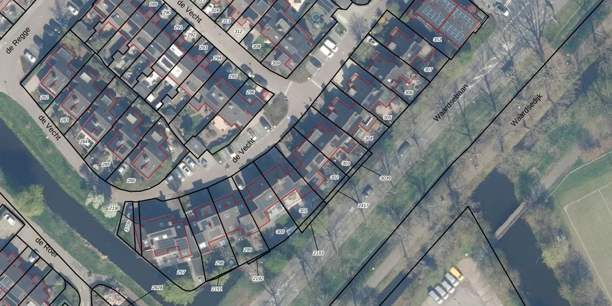 Gebruik de zoekbalk of klik op een perceel voor informatie over de adressen binnen dit perceel.