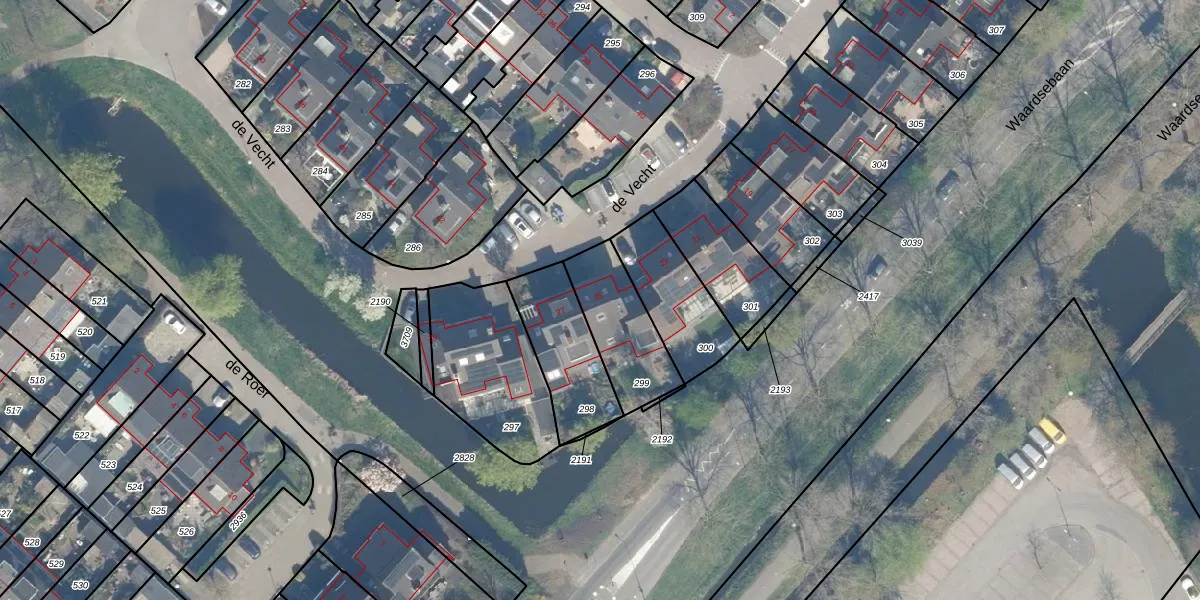 de Vecht 25 is gelegen op kadastraal perceel WDN01D299. Deze kadastrale aanduiding is uniek en wordt gebruikt door het Kadaster om eigendomsrechten en andere zakelijke rechten vast te leggen. Het perceel maakt onderdeel uit van de kadastrale gemeente Woerden.