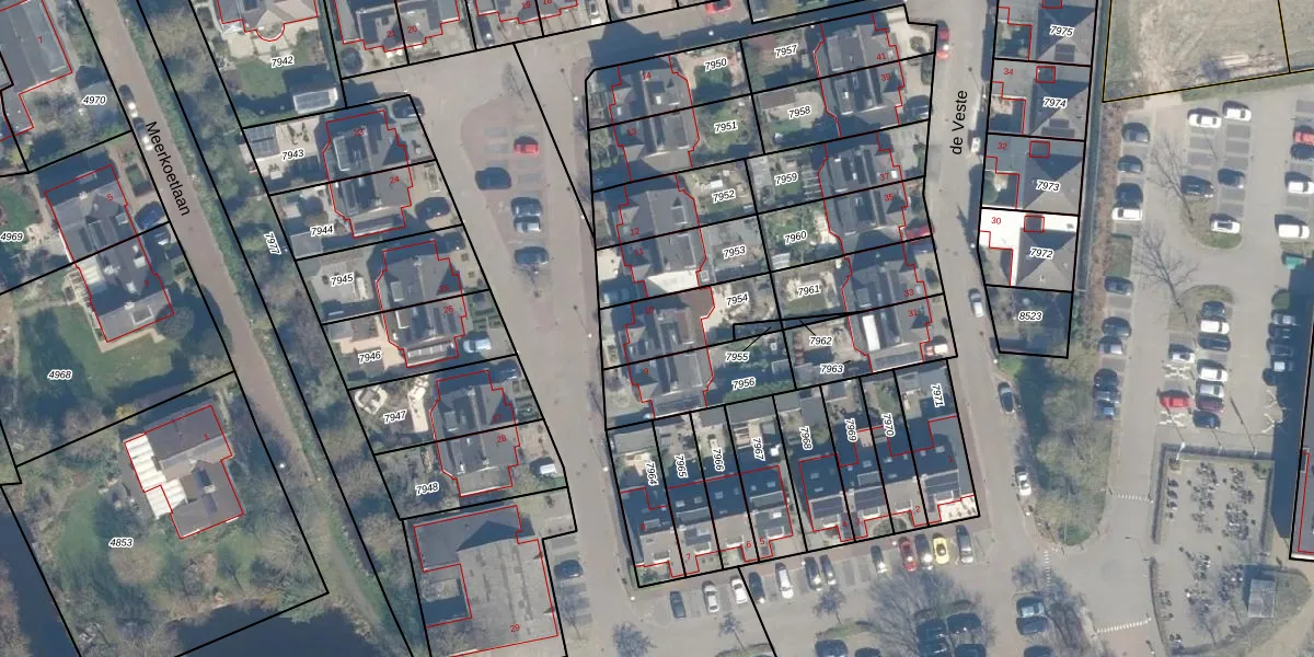 de Veste 10 is gelegen op kadastraal perceel WDN01B7954. Deze kadastrale aanduiding is uniek en wordt gebruikt door het Kadaster om eigendomsrechten en andere zakelijke rechten vast te leggen. Het perceel maakt onderdeel uit van de kadastrale gemeente Woerden.
