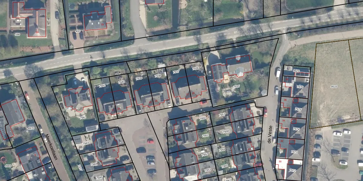 Het perceel waarop de Veste 17 staat heeft een oppervlakte van 235 m². Dit is een middelgroot perceel. De perceeloppervlakte wordt geregistreerd door het Kadaster. Gedetailleerde informatie over de maten van dit perceel kunt u vinden in het rapport Kadastrale kaart met maatvoering van de Veste 17.