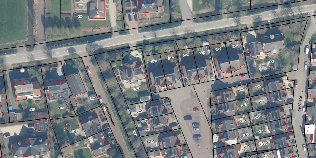 Het perceel waarop de Veste 21 staat heeft een oppervlakte van 250 m². Dit is een middelgroot perceel. De perceeloppervlakte wordt geregistreerd door het Kadaster. Gedetailleerde informatie over de maten van dit perceel kunt u vinden in het rapport Kadastrale kaart met maatvoering van de Veste 21.