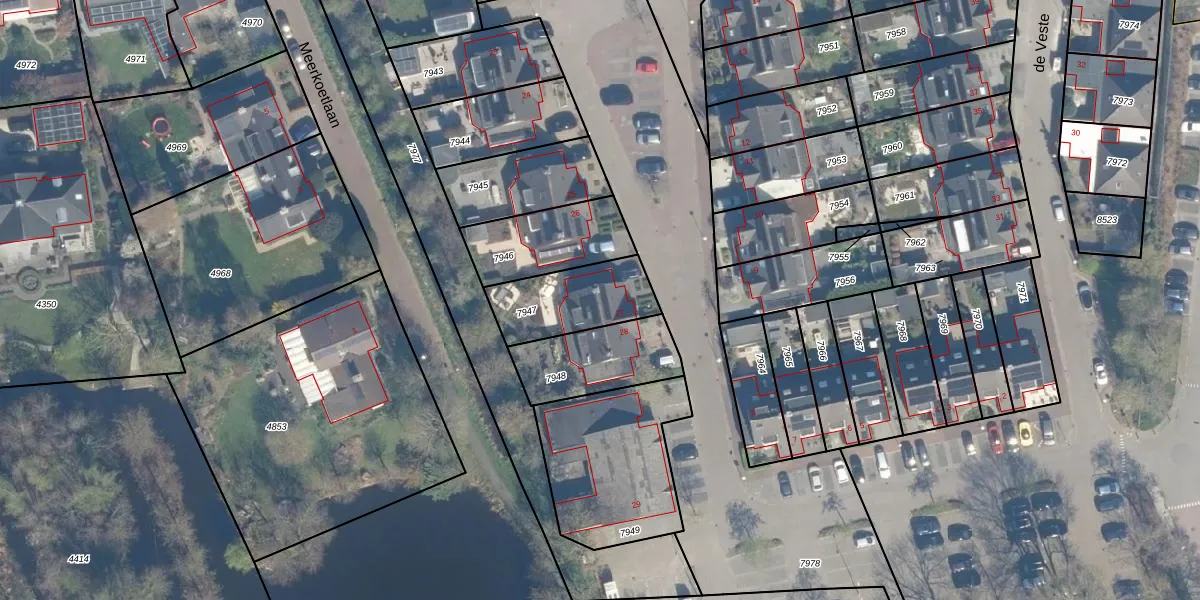 Het perceel waarop de Veste 27 staat heeft een oppervlakte van 280 m². Dit is een middelgroot perceel. De perceeloppervlakte wordt geregistreerd door het Kadaster. Gedetailleerde informatie over de maten van dit perceel kunt u vinden in het rapport Kadastrale kaart met maatvoering van de Veste 27.