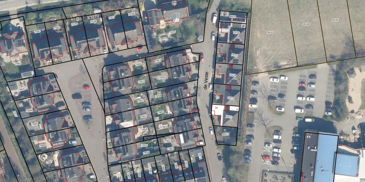 Het perceel waarop de Veste 37 staat heeft een oppervlakte van 240 m². Dit is een middelgroot perceel. De perceeloppervlakte wordt geregistreerd door het Kadaster. Gedetailleerde informatie over de maten van dit perceel kunt u vinden in het rapport Kadastrale kaart met maatvoering van de Veste 37.