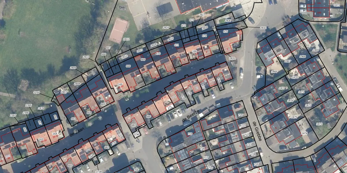 Gebruik de zoekbalk of klik op een perceel voor informatie over de adressen binnen dit perceel.