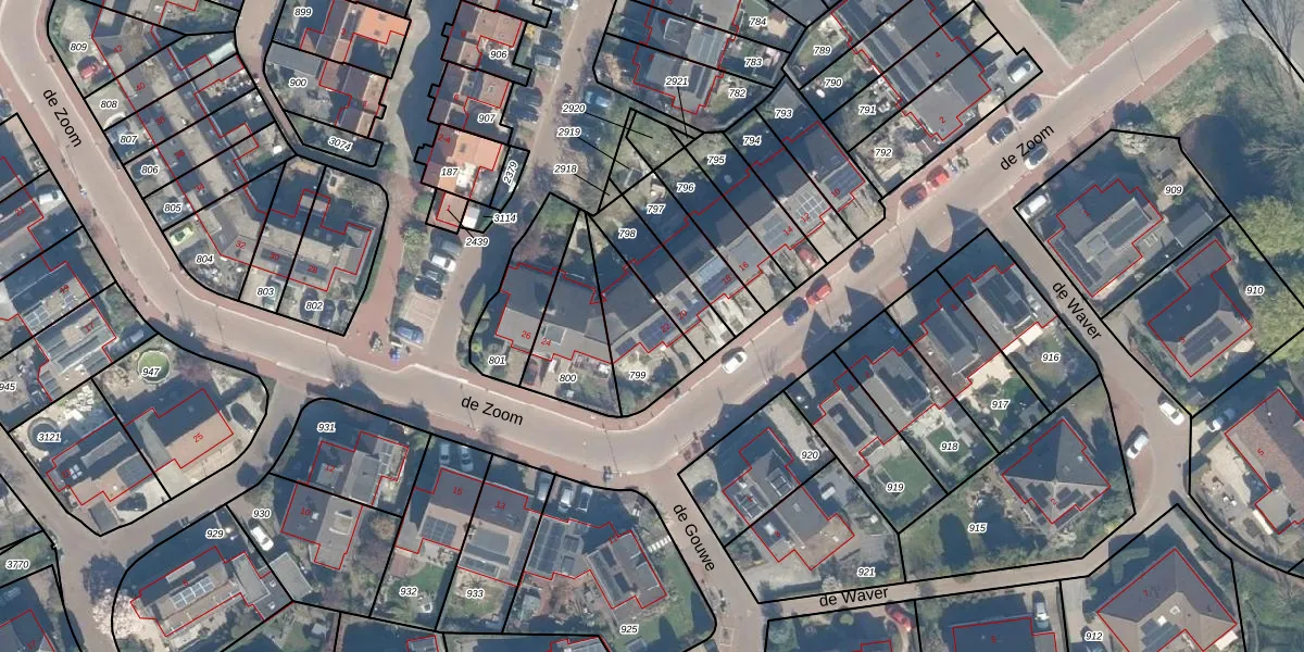 Gebruik de zoekbalk of klik op een perceel voor informatie over de adressen binnen dit perceel.