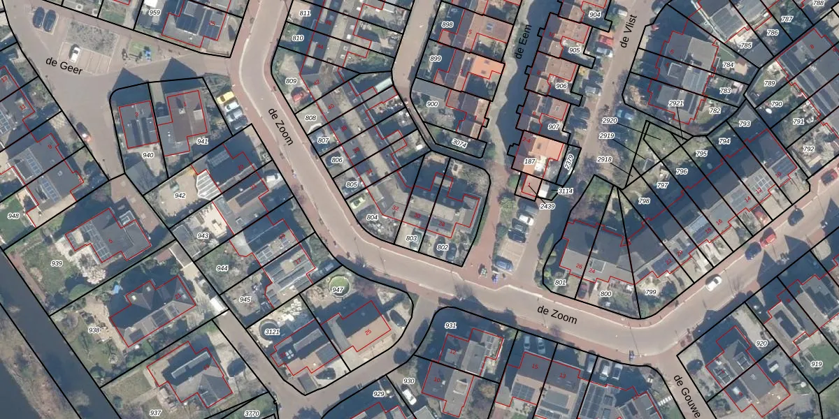 Gebruik de zoekbalk of klik op een perceel voor informatie over de adressen binnen dit perceel.