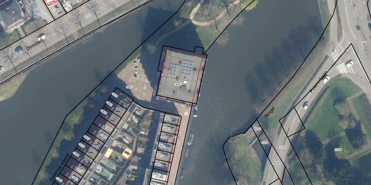 Defensie-eiland 102 is gelegen op kadastraal perceel WDN01C3461. Deze kadastrale aanduiding is uniek en wordt gebruikt door het Kadaster om eigendomsrechten en andere zakelijke rechten vast te leggen. Het perceel maakt onderdeel uit van de kadastrale gemeente Woerden.