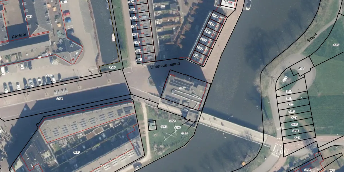 Het perceel waarop Defensie-eiland 57 staat heeft een oppervlakte van 430 m². Dit is een groot perceel. De perceeloppervlakte wordt geregistreerd door het Kadaster. Gedetailleerde informatie over de maten van dit perceel kunt u vinden in het rapport Kadastrale kaart met maatvoering van Defensie-eiland 57.