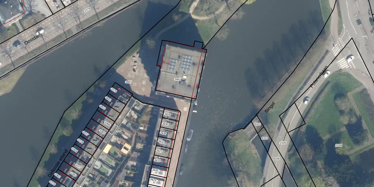 Defensie-eiland 92 is gelegen op kadastraal perceel WDN01C3461. Deze kadastrale aanduiding is uniek en wordt gebruikt door het Kadaster om eigendomsrechten en andere zakelijke rechten vast te leggen. Het perceel maakt onderdeel uit van de kadastrale gemeente Woerden.