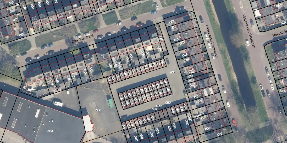 Gebruik de zoekbalk of klik op een perceel voor informatie over de adressen binnen dit perceel.