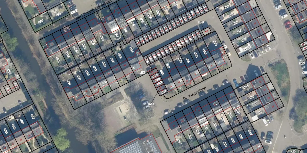 Dr. Kuyperlaan 24 is gelegen op kadastraal perceel WDN01A4723. Deze kadastrale aanduiding is uniek en wordt gebruikt door het Kadaster om eigendomsrechten en andere zakelijke rechten vast te leggen. Het perceel maakt onderdeel uit van de kadastrale gemeente Woerden.