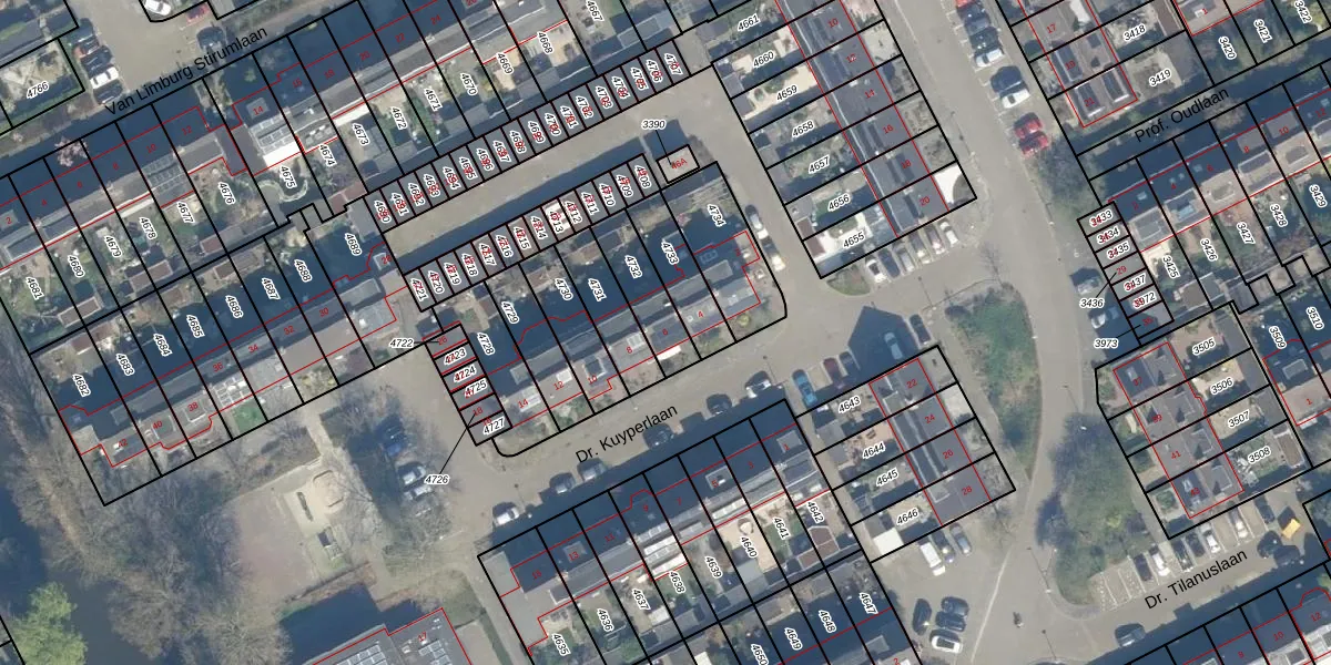Gebruik de zoekbalk of klik op een perceel voor informatie over de adressen binnen dit perceel.