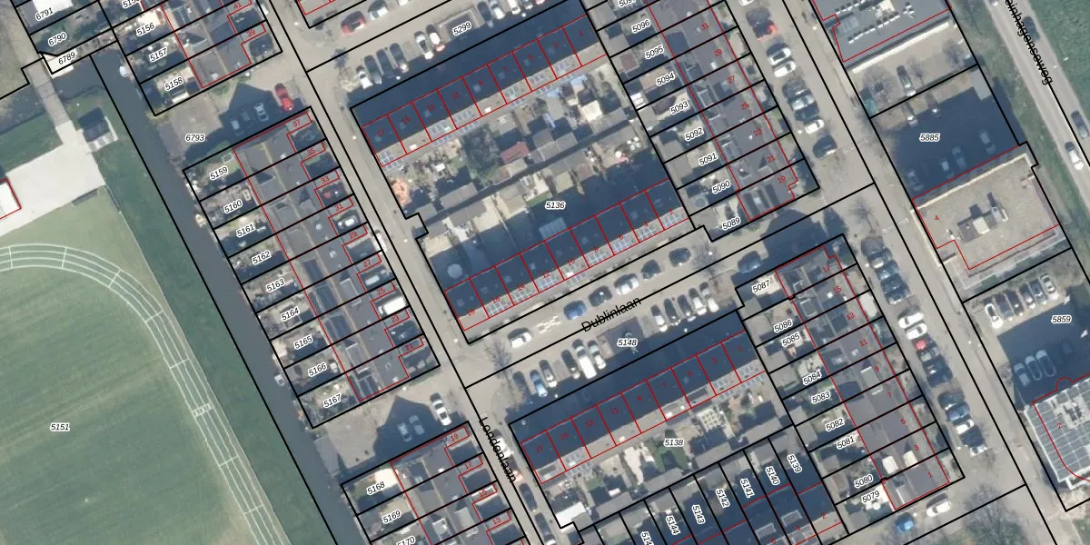 Dublinlaan 12 is gelegen op kadastraal perceel WDN01A5136. Deze kadastrale aanduiding is uniek en wordt gebruikt door het Kadaster om eigendomsrechten en andere zakelijke rechten vast te leggen. Het perceel maakt onderdeel uit van de kadastrale gemeente Woerden.