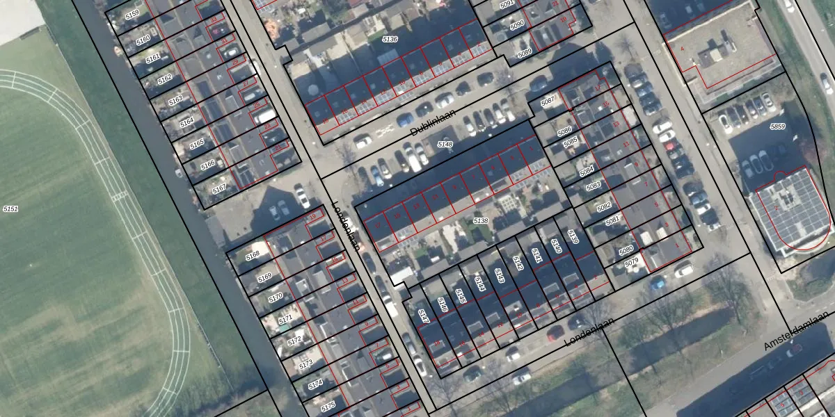 Dublinlaan 13 is gelegen op kadastraal perceel WDN01A5138. Deze kadastrale aanduiding is uniek en wordt gebruikt door het Kadaster om eigendomsrechten en andere zakelijke rechten vast te leggen. Het perceel maakt onderdeel uit van de kadastrale gemeente Woerden.