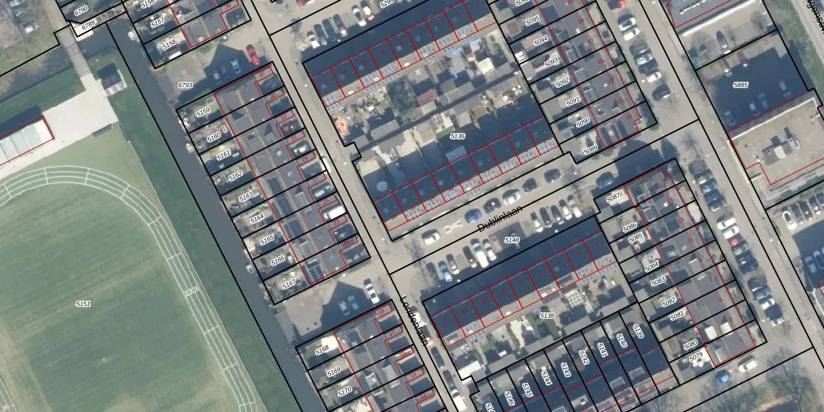 Dublinlaan 16 is gelegen op kadastraal perceel WDN01A5136. Deze kadastrale aanduiding is uniek en wordt gebruikt door het Kadaster om eigendomsrechten en andere zakelijke rechten vast te leggen. Het perceel maakt onderdeel uit van de kadastrale gemeente Woerden.