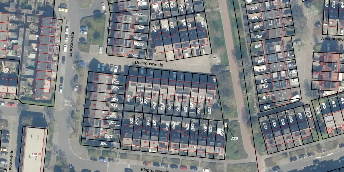 Gebruik de zoekbalk of klik op een perceel voor informatie over de adressen binnen dit perceel.