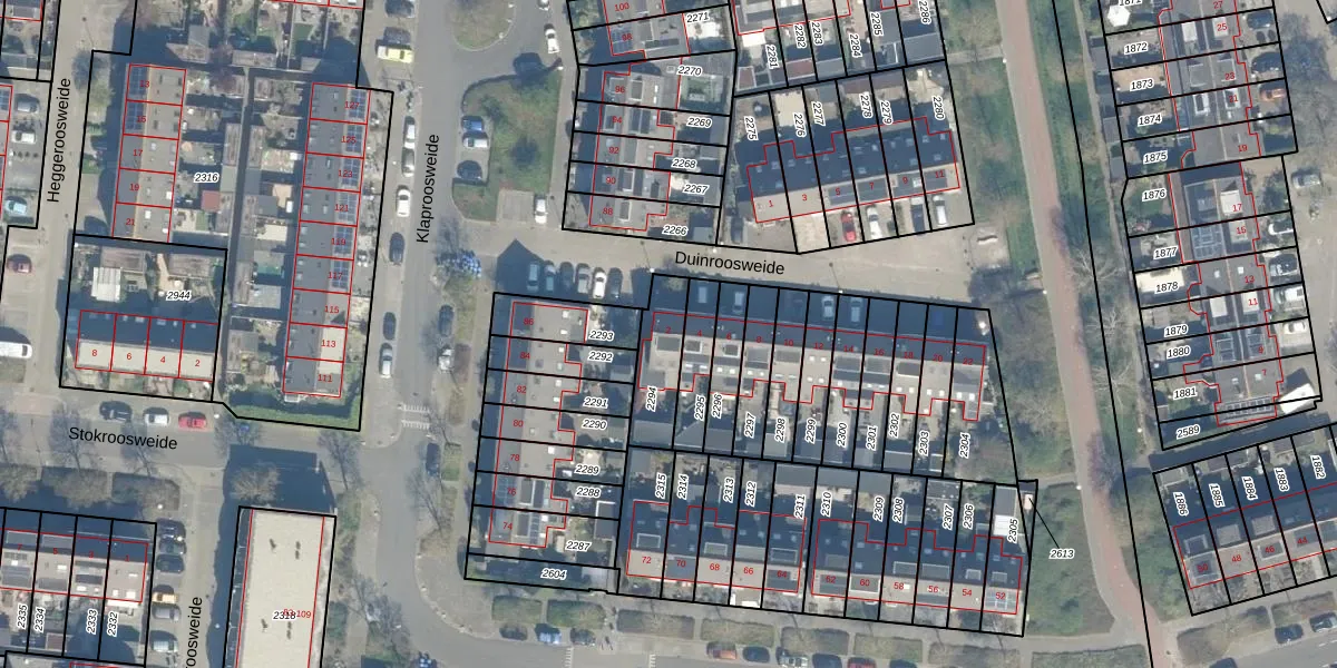 Gebruik de zoekbalk of klik op een perceel voor informatie over de adressen binnen dit perceel.