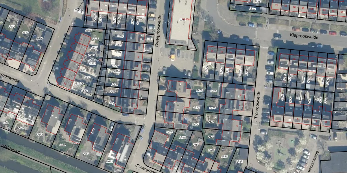 Gebruik de zoekbalk of klik op een perceel voor informatie over de adressen binnen dit perceel.