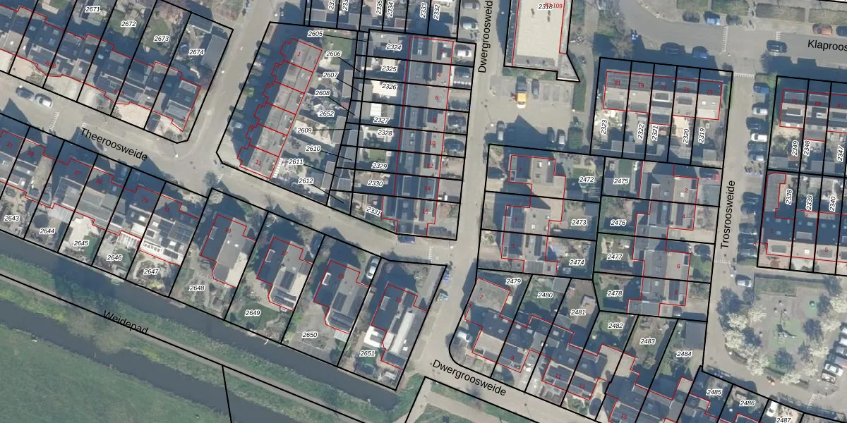 Gebruik de zoekbalk of klik op een perceel voor informatie over de adressen binnen dit perceel.