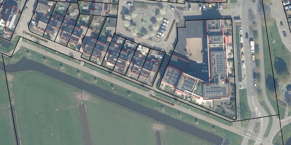 Het perceel waarop Dwergroosweide 25 staat heeft een oppervlakte van 260 m². Dit is een middelgroot perceel. De perceeloppervlakte wordt geregistreerd door het Kadaster. Gedetailleerde informatie over de maten van dit perceel kunt u vinden in het rapport Kadastrale kaart met maatvoering van Dwergroosweide 25.
