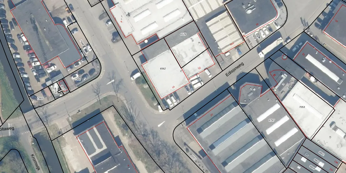 Edisonweg 14 is gelegen op kadastraal perceel WDN01B6562. Deze kadastrale aanduiding is uniek en wordt gebruikt door het Kadaster om eigendomsrechten en andere zakelijke rechten vast te leggen. Het perceel maakt onderdeel uit van de kadastrale gemeente Woerden.