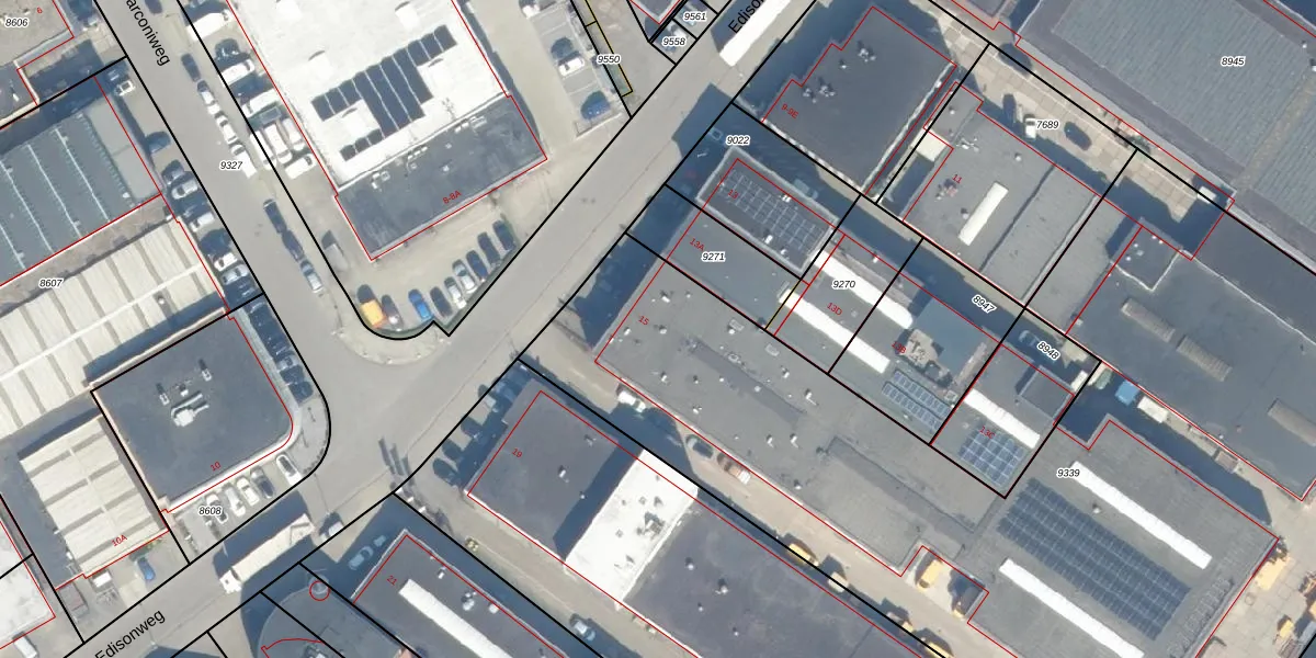 Het perceel waarop Edisonweg 15 staat heeft een oppervlakte van 6345 m². Dit is een zeer groot perceel. De perceeloppervlakte wordt geregistreerd door het Kadaster. Gedetailleerde informatie over de maten van dit perceel kunt u vinden in het rapport Kadastrale kaart met maatvoering van Edisonweg 15.