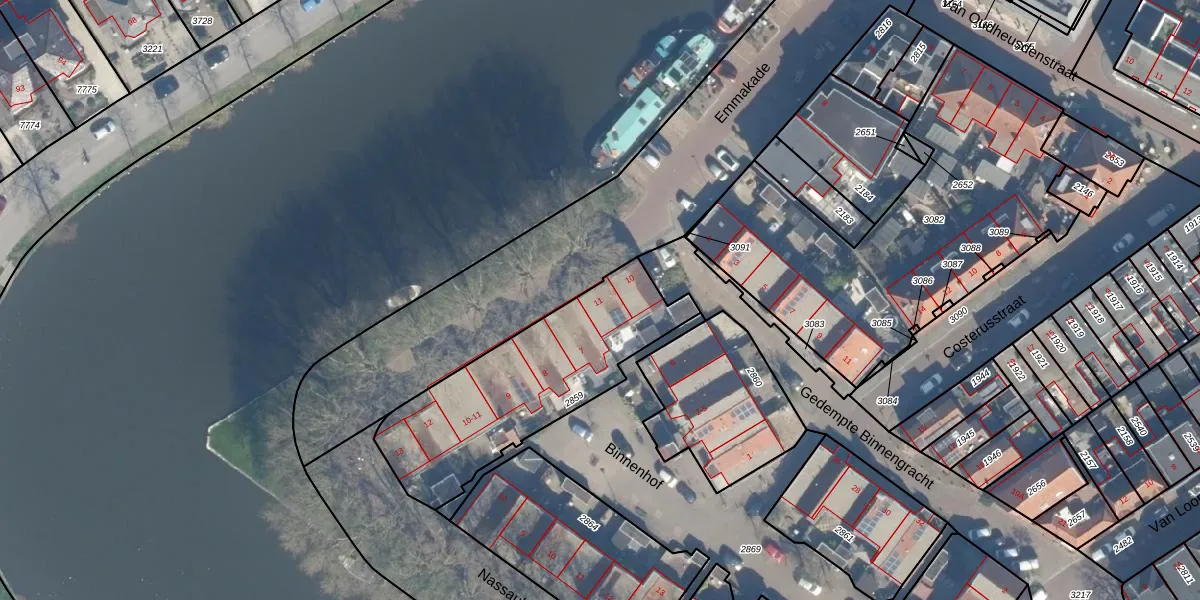 Emmakade 11 is gelegen op kadastraal perceel WDN01C2859. Deze kadastrale aanduiding is uniek en wordt gebruikt door het Kadaster om eigendomsrechten en andere zakelijke rechten vast te leggen. Het perceel maakt onderdeel uit van de kadastrale gemeente Woerden.