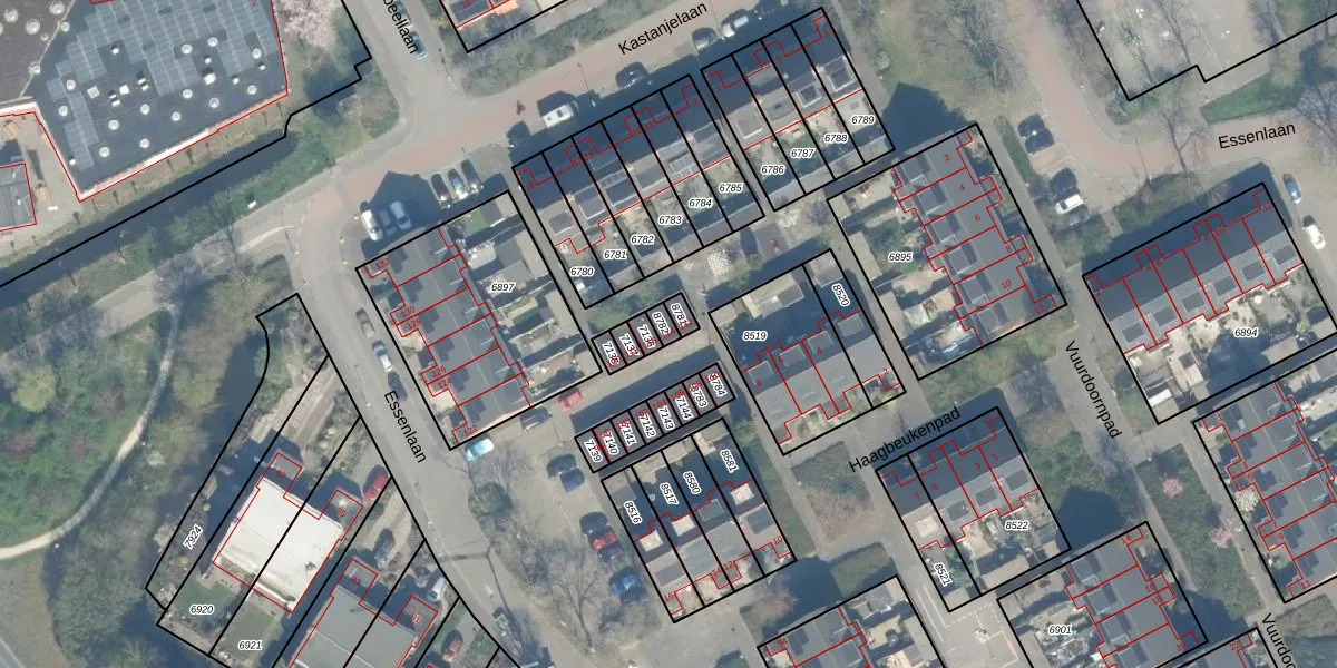 Gebruik de zoekbalk of klik op een perceel voor informatie over de adressen binnen dit perceel.