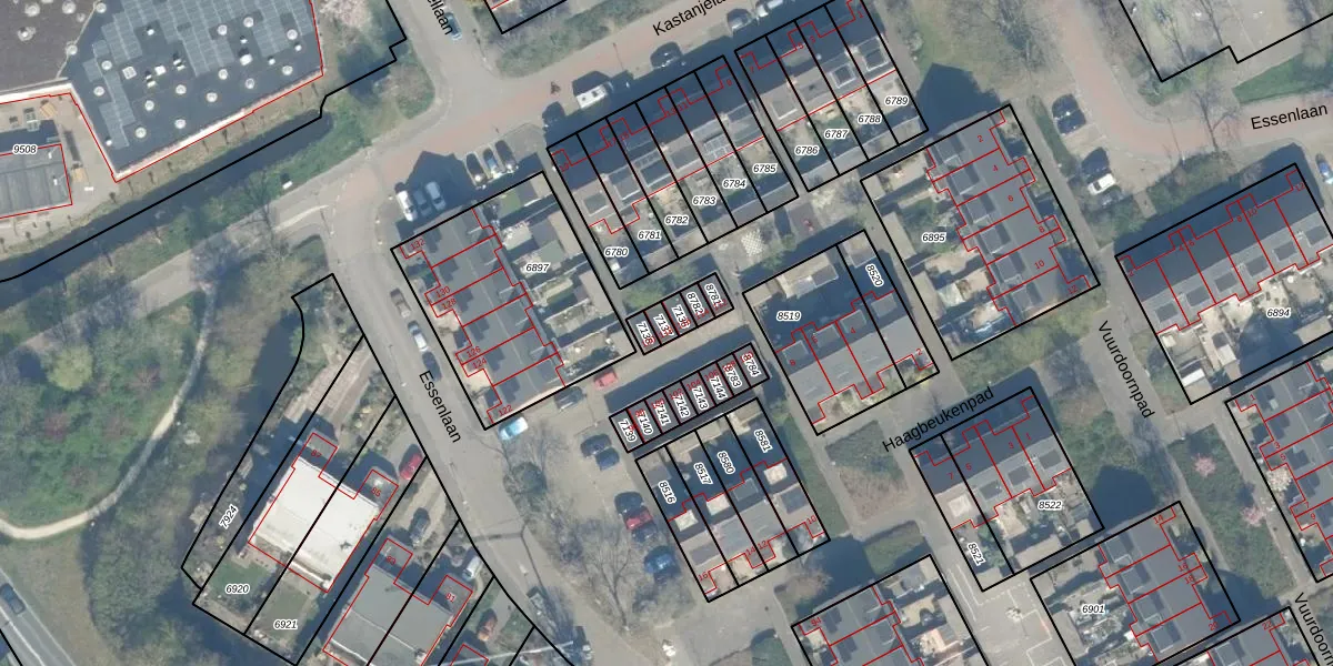 Gebruik de zoekbalk of klik op een perceel voor informatie over de adressen binnen dit perceel.