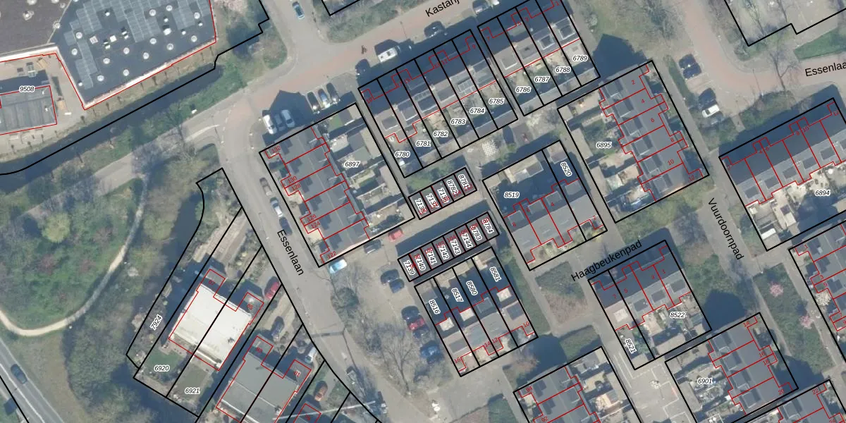 Essenlaan 120 is gelegen op kadastraal perceel WDN01B7138. Deze kadastrale aanduiding is uniek en wordt gebruikt door het Kadaster om eigendomsrechten en andere zakelijke rechten vast te leggen. Het perceel maakt onderdeel uit van de kadastrale gemeente Woerden.
