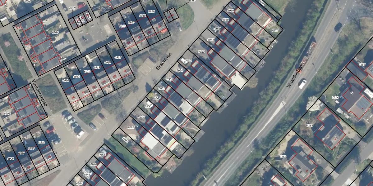 Essenlaan 21 is gelegen op kadastraal perceel WDN01B6953. Deze kadastrale aanduiding is uniek en wordt gebruikt door het Kadaster om eigendomsrechten en andere zakelijke rechten vast te leggen. Het perceel maakt onderdeel uit van de kadastrale gemeente Woerden.