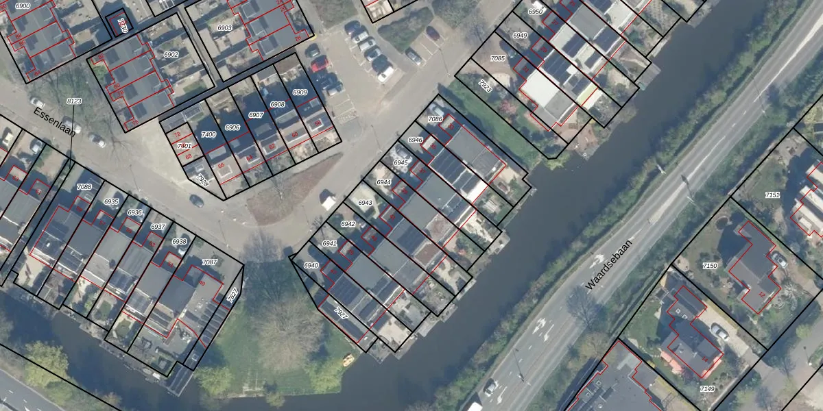 Essenlaan 39 is gelegen op kadastraal perceel WDN01B6944. Deze kadastrale aanduiding is uniek en wordt gebruikt door het Kadaster om eigendomsrechten en andere zakelijke rechten vast te leggen. Het perceel maakt onderdeel uit van de kadastrale gemeente Woerden.